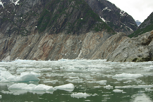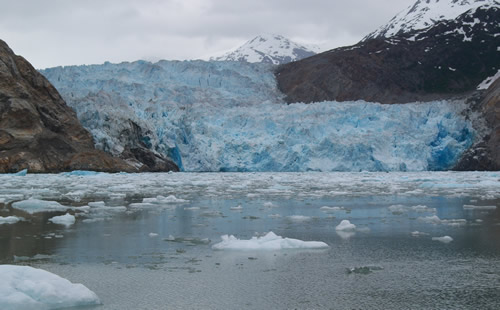 Sawyer Glacier is an Alaskan glacier that many people have observed the retreat of. It is one of three glaciers that calves into Tracy Fjord, that is often visited by cruise ships. The 2.3 km retreat over the last 50 years has made approach to the actual terminus difficult for larger cruise ships. The terminus of the glacier was almost to the main arm of the fjord in 1961, USGS map, blue arrow. The 2003 Google Earth images indicates a 2.3 km retreat, green arrow.