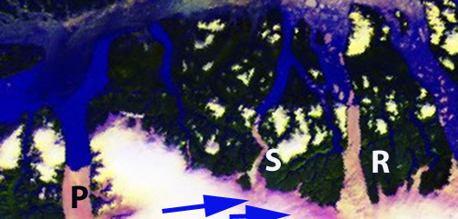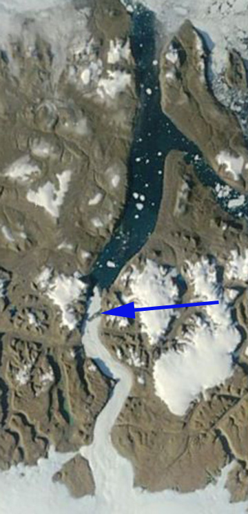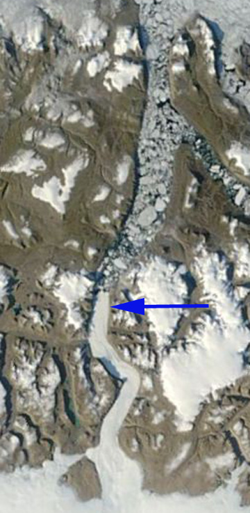 The tongue of 79 was then larger especially the northern branch up the Fjord, and the separation of the Zachariae tongue only just started.
