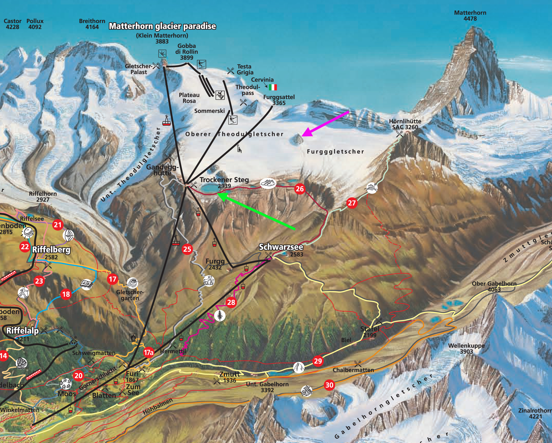 Theodulgletscher is one of the most visited glaciers in the world. It is part of the Zermatt ski resort in Switzerland. With three lifts crossing the glaciers western half. theodul trail map.