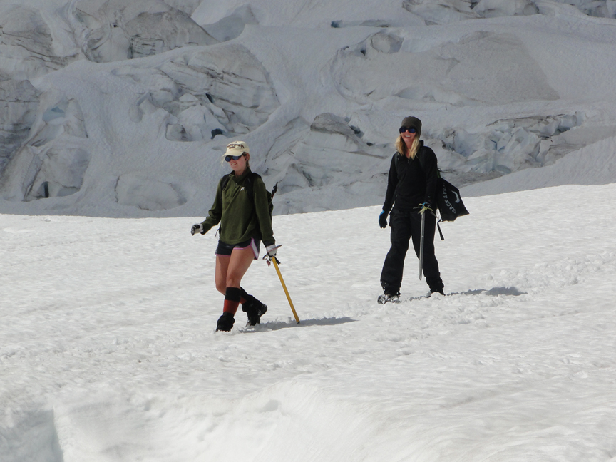 The 2014 Glacier Field season was our 31st consecutive year working on North Cascade glaciers. After a late winter surge of snowfall, the North Cascades had a slightly above average snowpack as the melt season began in early May. The warm, dry summer to date, could end up being the warmest for the region, currently 2013 was the warmest melt season. The result is glacier melt has been high overall. In the field we measured the mass balance, terminus position, surface elevation and runoff from North Cascade glaciers. This includes assessment of annual retained snow layer thickness in crevasses and overall crevasse depth.