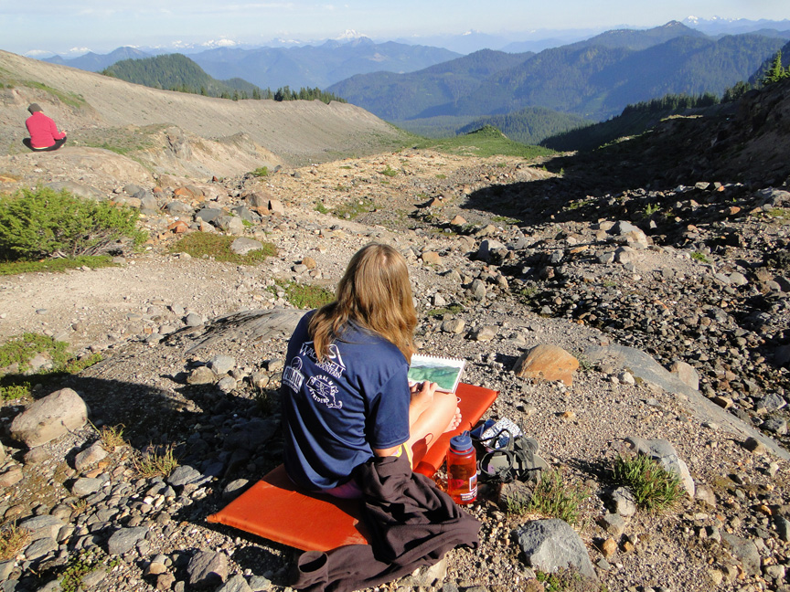 Jill’s field sketch of glacier runoff with Penstemon in foreground.
