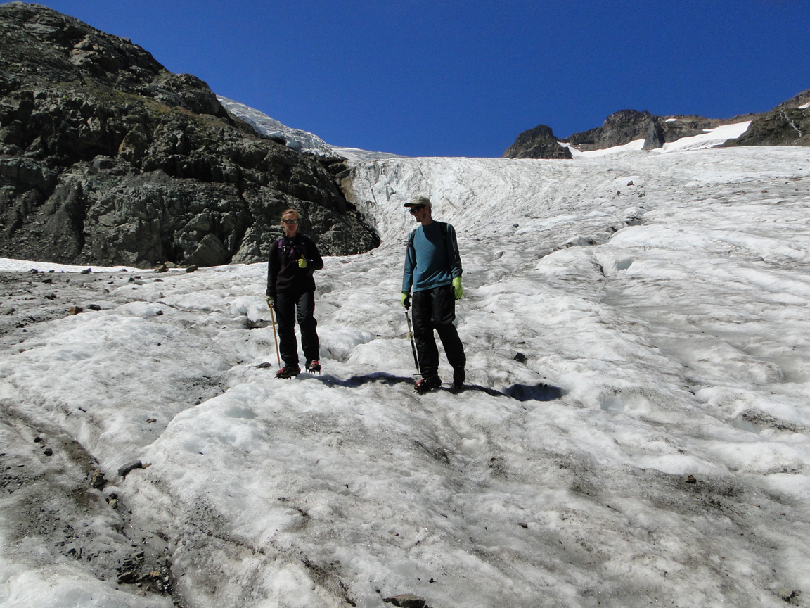 From 1984-2014 we have monitored the mass balance of the Rainbow Glacier on Mount Baker, North Cascade Range, Washington. This entails detailed monitoring of snowpack depth in July and August, and subsequent ablation to the end of the melt season. On July 13th the glacier was completely snowcovered. By August 10th the snowline had risen to 1575 m, with 1.4 m of ablation since July 13th. We measured the snowdepth at 85 locations on the glacier, with only 6 measurements exceeding 3.5 m on Aug. 10th.