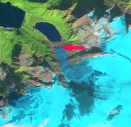 Late in the 18th century Svartisvatnet,the lake below the terminus, started to appear as the glacier retreated upvalley. In 1903 regular length change observations were initiated, a small advance ensued until 1910. By 1931 the glacier retreated 100 meters, and the glacier tongue was thinning. During the next decade calving led to rapid retreat revealing the rest of Engabrevatnet. This period of retreat ended in 1965, Engabreen advanced with three different pulses ending in 1971, 1984 and 1999, the last pulse reaching to within a few meters of the lake shore.Below are pictures from the NVE taken in 2000 and 2008 of Engabreen, note the large contraction of the terminus area. This is further illustrated in Landsat images below.