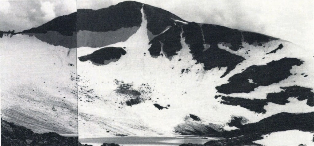 In 1940 the glacier was ~1.6 km. wide and on its northwest side terminated in a 15-m. cliff in a small lake. In 1966, see map below, glacier had an area of 0.42 km2, with a small lake present. The glacier lost 50% of its area and 90% of its volume between the Kimball visit in 1898 and Jane Ferrigno visiting in 1981 (Ferrigno, 1981). In 1981 the upper and lower sections of the glacier are still connecterd, with the bench between them not yet exposed.