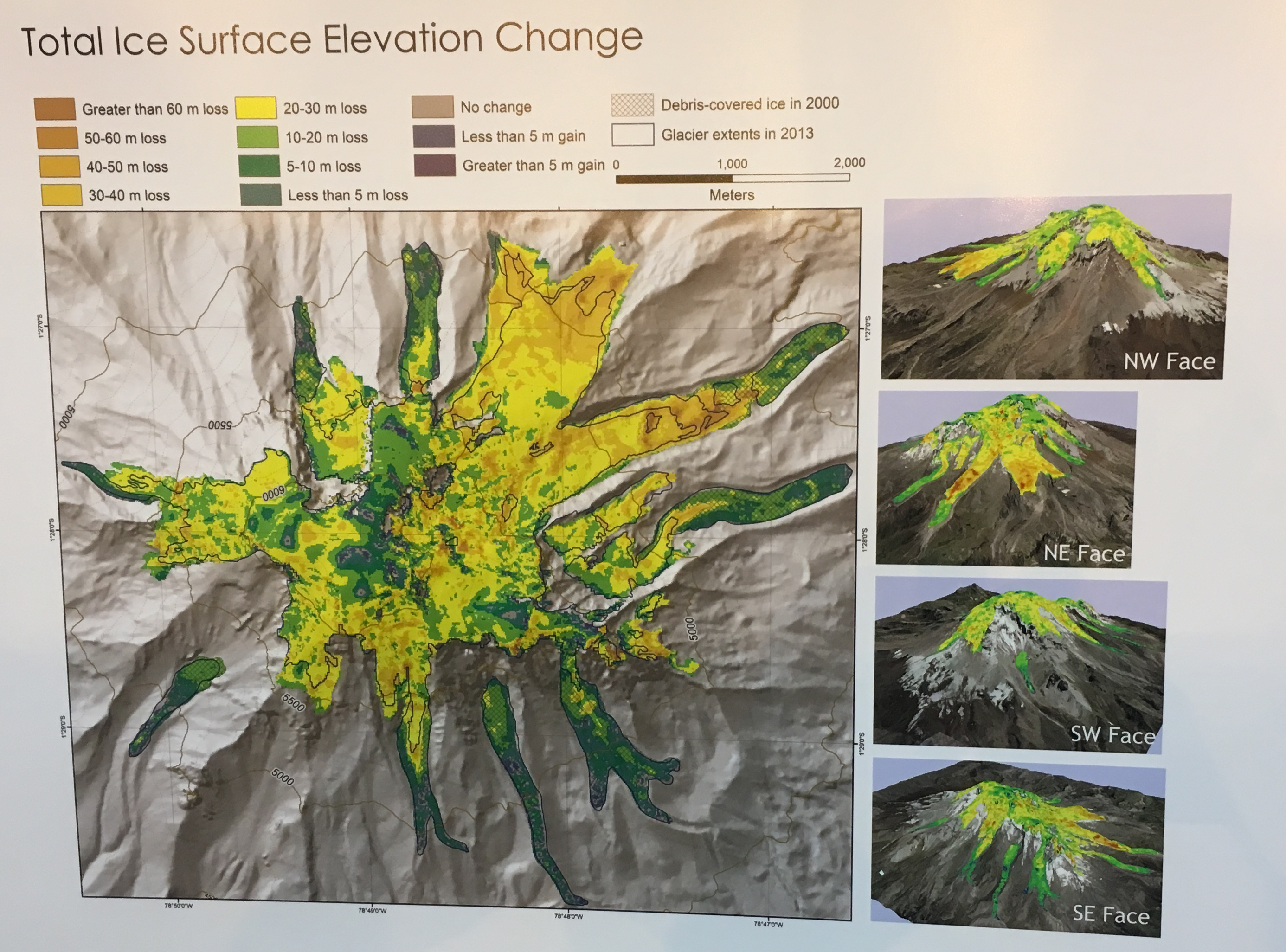 In 2015, the mean May–September temperature at Diablo Dam was 2.2 °C warmer than the long term mean, and it was the second warmest to 1958 in the 1950–2015 record. For June–September, the mean temperature was 2.0 °C warmer than the long term mean, and was also second to 1958 as the warmest. The combination of the warmest melt season in over 50 years and the second lowest accumulation season snowpack in the last 30 years was a good indication that the glacier mass balance would be quite negative.