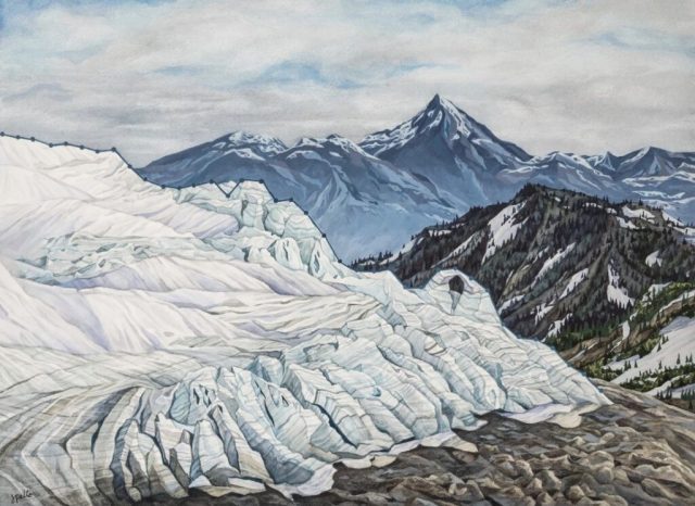 Mass balance change of North Cascade glaciers during our first 40 years, painting by Jill Pelto