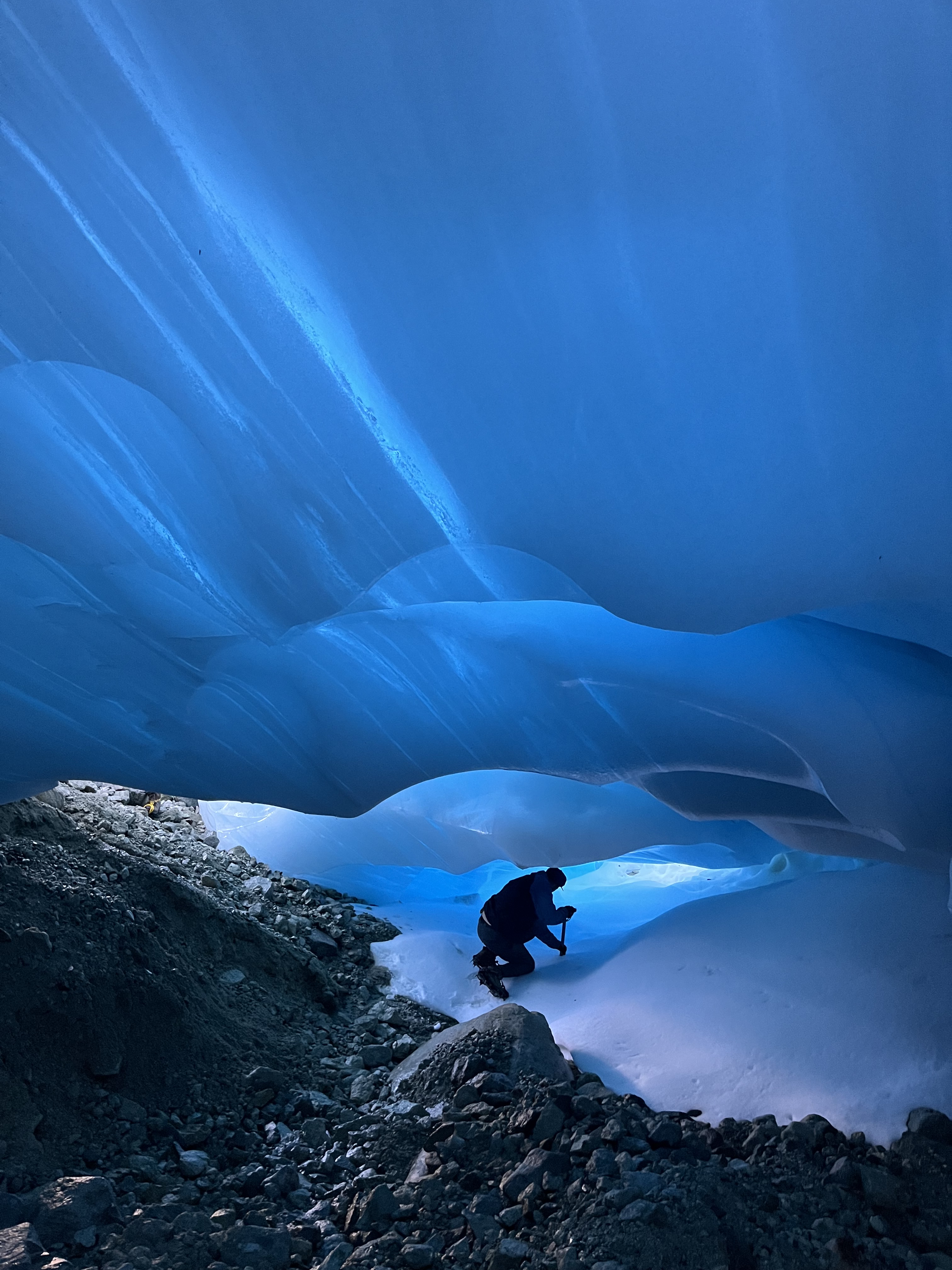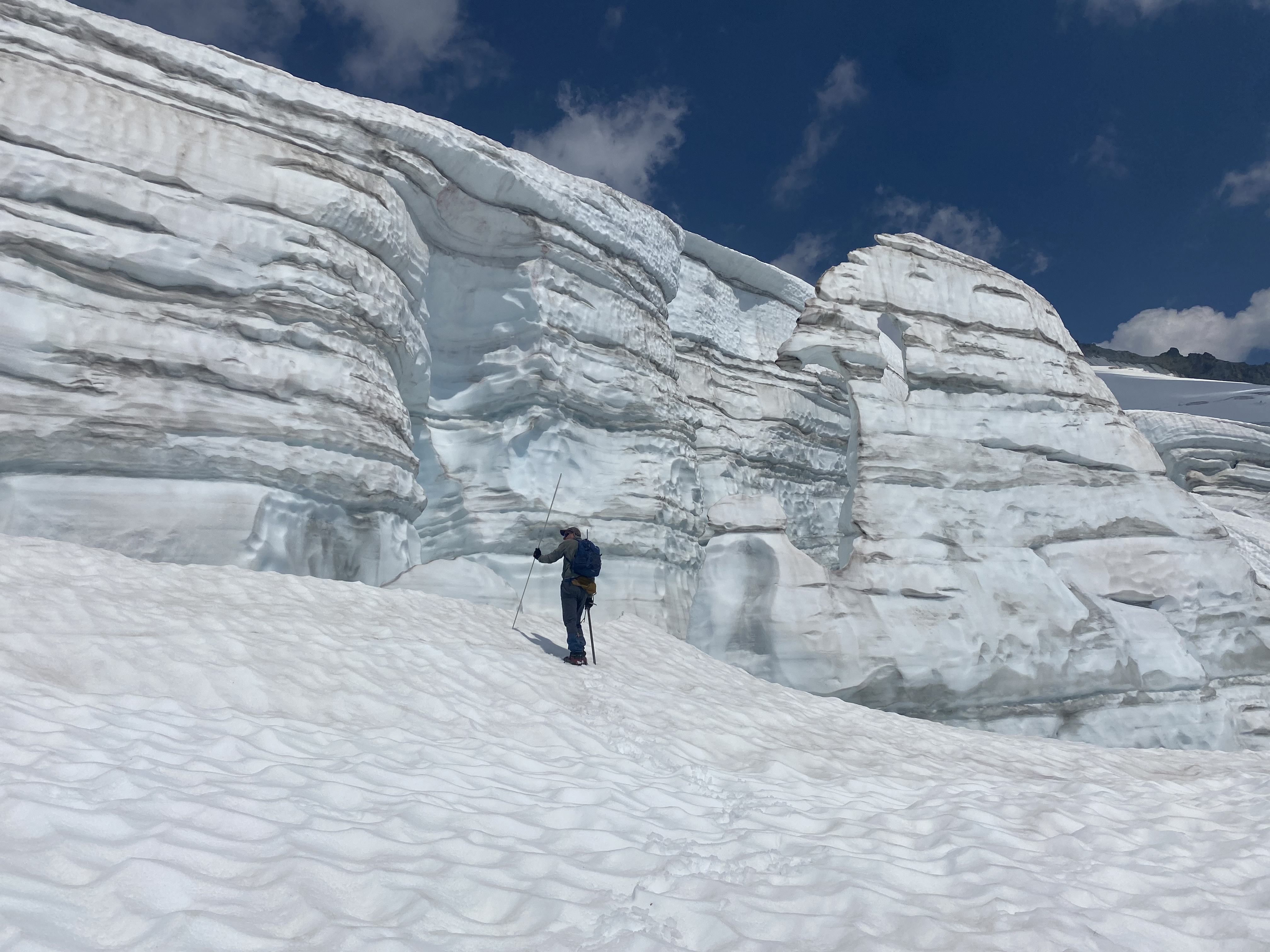 Ben Pelto: Disappearing glaciers remind me of grandparents—I’m saddened by their decline, yet deeply grateful for the time I still have with them. This year, being in the field was especially meaningful, surrounded by an incredible group of people, just experiencing the mountains and soaking it all in. What I find hardest about glaciers vanishing is not just the loss of ice, but the disappearance of their dynamism and beauty from the landscape. These ancient giants bring a sense of magic and power to the mountains, and it breaks my heart to think that my children or grandchildren might never witness them as I have.