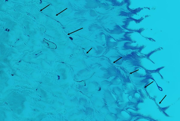 Here we examine the changes from 2000 to 2016 at ten locations near the front of the southern most of the main outlets of Upernavik Glacier. This reveals the formation of new islands, exposure of the former glacier bed and expansion of nunataks.