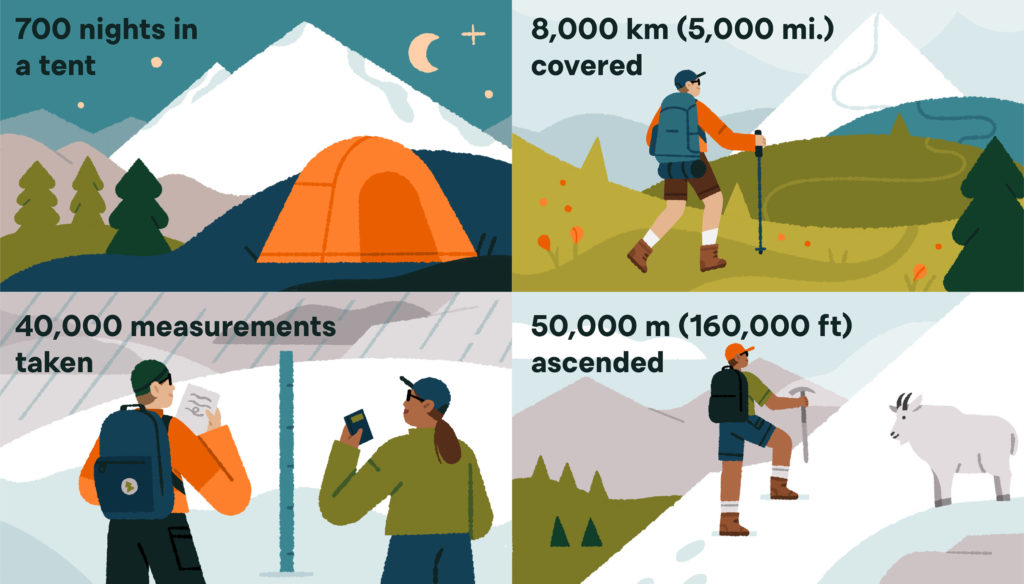 A few measures of what it takes to execute a field monitoring program of glaciers for 37 years, with no helicopter support (Illustration by Megan Pelto).
