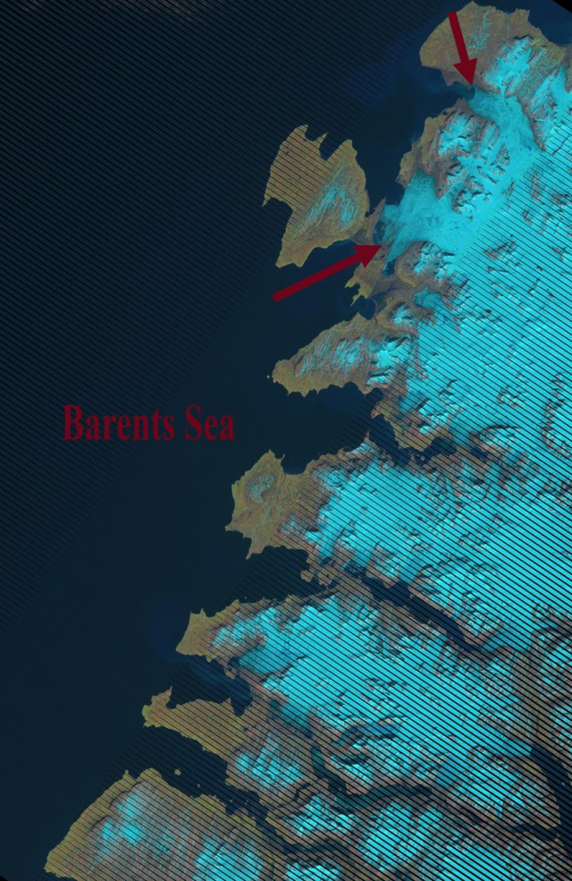 Nizkiy Glacier is on the west coast of the island reaching the Barents Sea Coast. The glaciers of northern Novaya Zemlya, Russia are truly generally out of sight out of mind. There remoteness and lack of importance as a water resource being the key reasons. It is particularly important to pay attention to these glaciers due to the recent changes in sea ice cover that have left a much longer duration of open water around the island particularly to the west in the Barents Sea. Nizkiy lost 1.2 km2 in area from 1990-2000 (LEGOS, 2006). Carr et al (2014) identified an average retreat rate of 52 meters/year for tidewater glaciers on Novaya Zemlya from 1992 to 2010 and 5 meters/year for land terminating glaciers. Here we compare a Landsat image from 1990 and 2016.