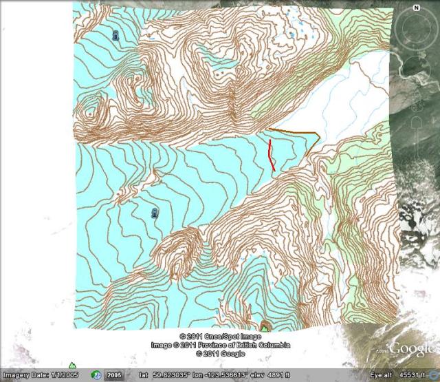 Bridge Glacier is an 17 km long outlet glacier of the Lilloet Icefield in British Columbia. The glacier ends in a rapidly expanding glacial lake with 1100 meters of retreat from 2005-2010. This 200+ m per year retreat is a substantial acceleration over the observed retreat rate of 30 m per year from 1981-2005 by Allen and Smith (2007). They examined the dendrolchronology of Holocene advances of the glacier and found up to 2005 a 3.3 kilometer advance from the primary terminal moraine band, with the most extensive advances being early in the Little Ice Age. The glacier currently ends at 1400 m and in 2010 had a late summer snowline of 2000 m.
