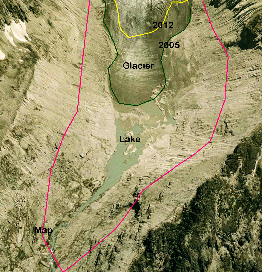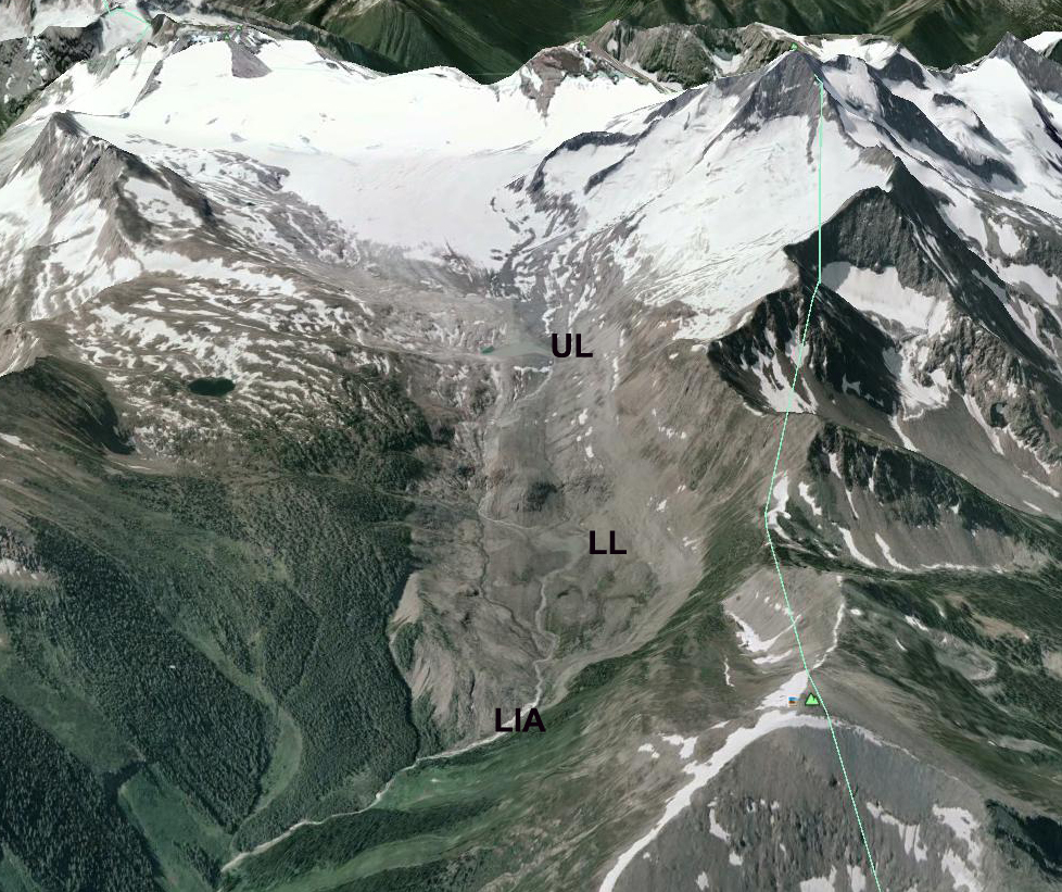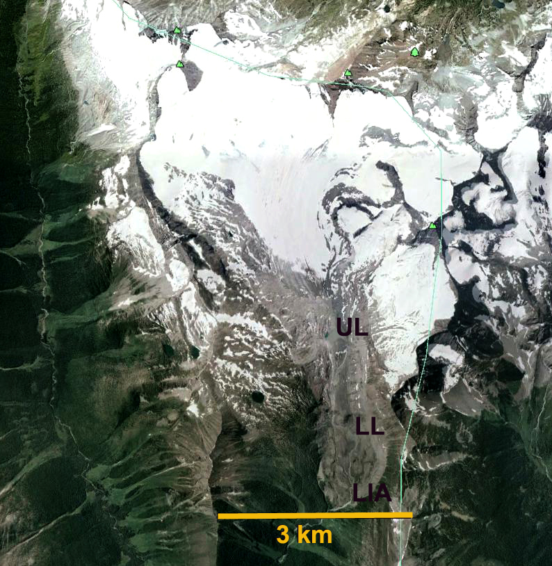 Google Earth Image of Cummins Glacier location to Kinbasket Lake.