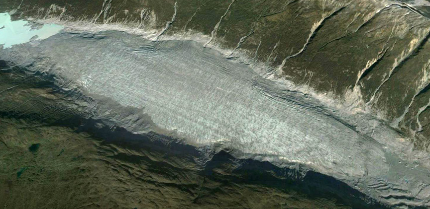 Thinning of this glacier from 1948-2016 is evident from a comparison of topographic maps. Thinning in remaining glacier are averages 225 m during this period, that is a rate of ~3.3 m/year. Larsen et al (2007) had found a thinning rate of ~3 m/year for the 1948-2000 period.