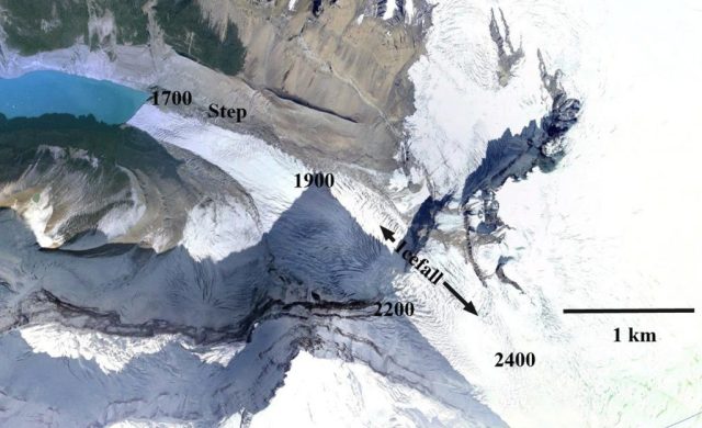 Easton Glacier has retreated 470 m from 1990-2022. Above is 2022 and below is 2003 image.