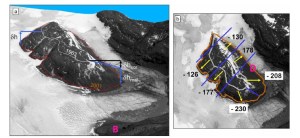 Vallot Glacier has retreated 2.4 km creating a new alpine lake at its southern terminus. The glacier will have just one terminus in the near future and the two lake basins could merge.
