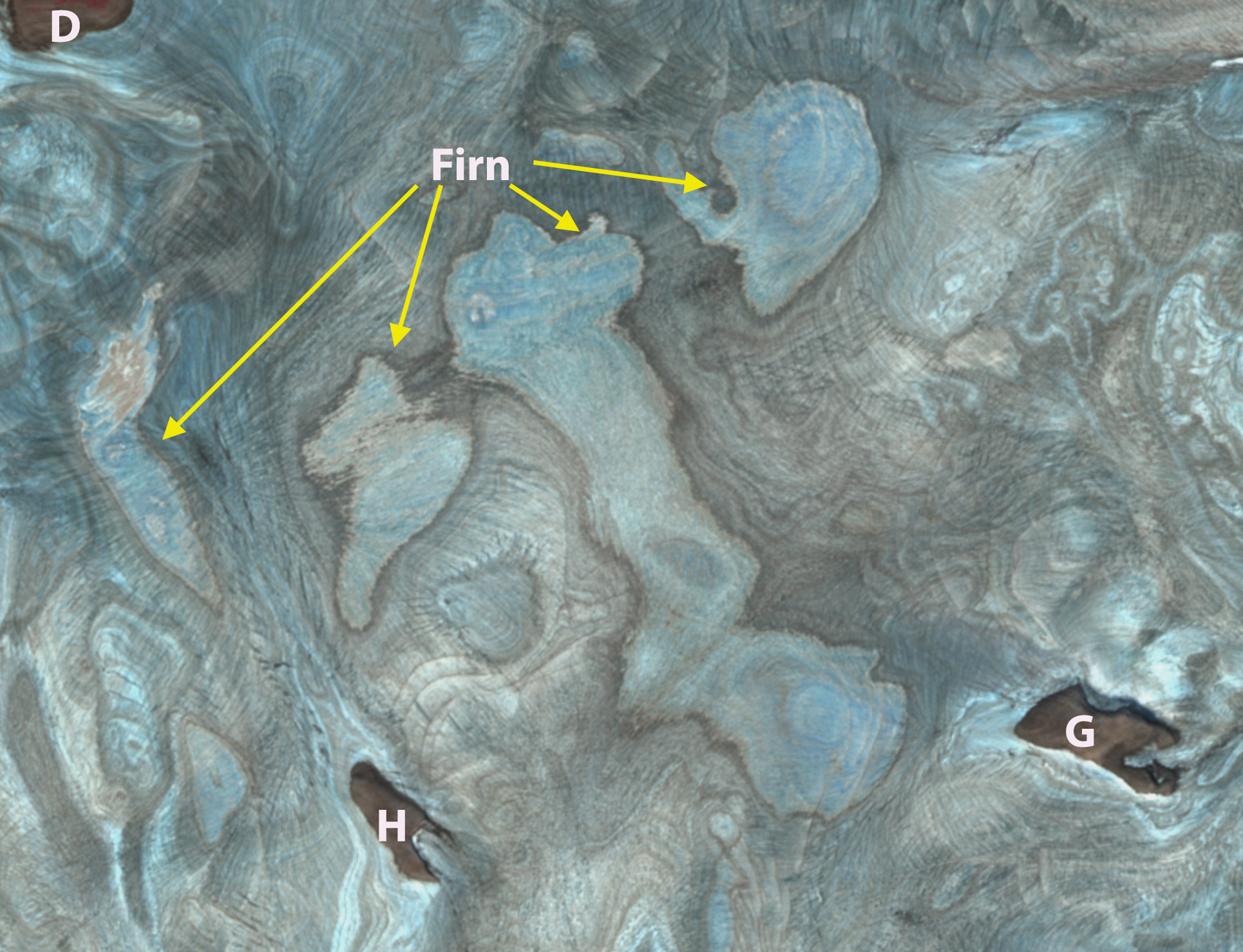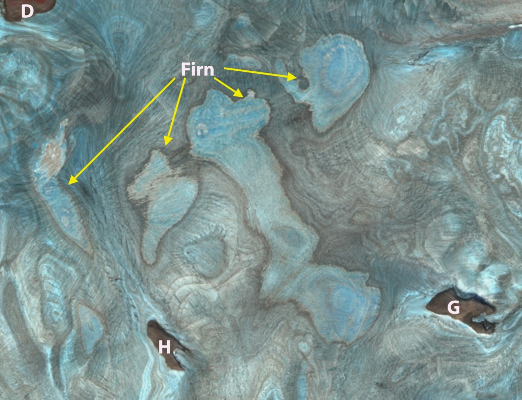 Point E and F are valleys occupied by ice from Langjokulen that have lost that ice by 2022.