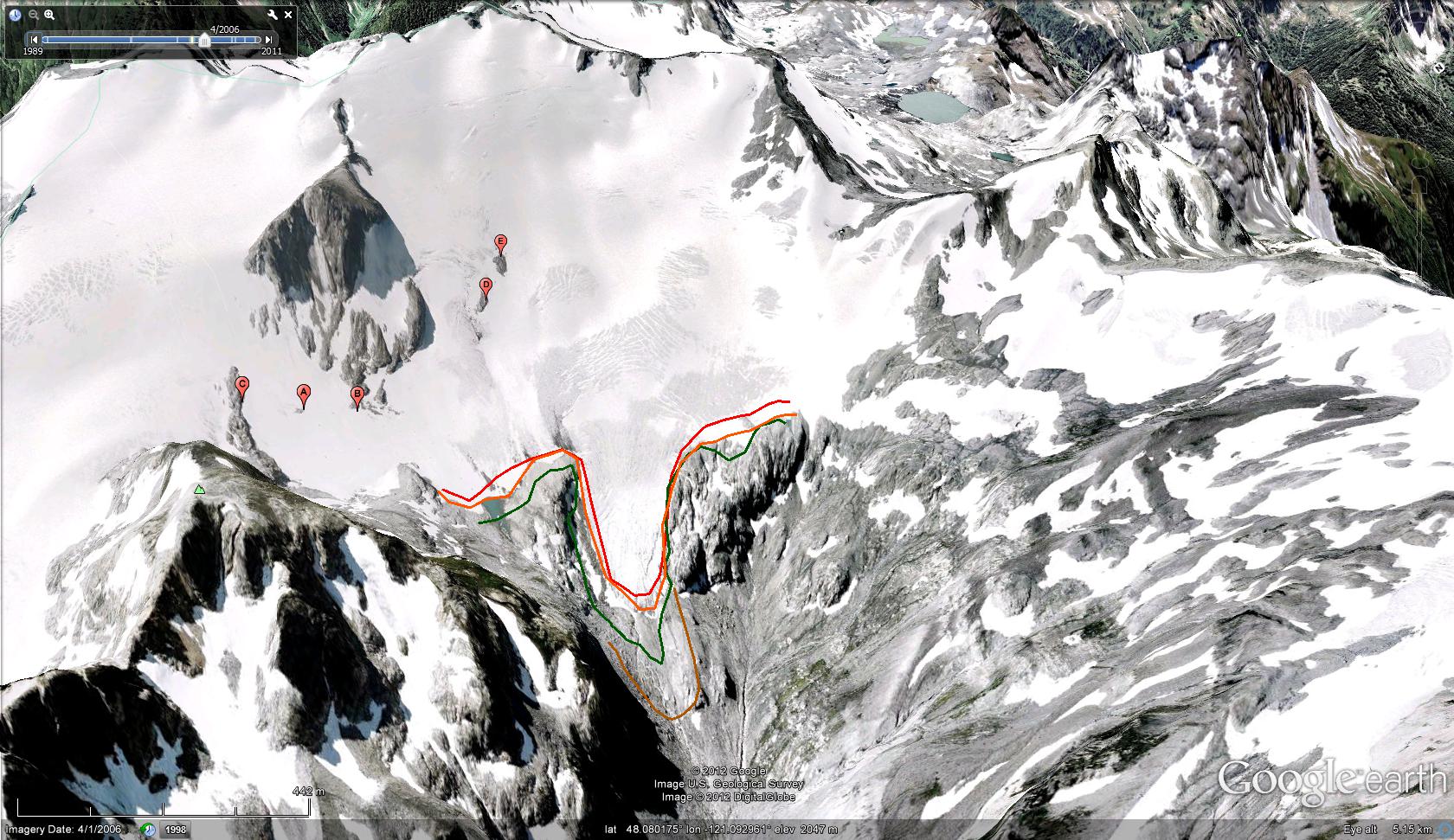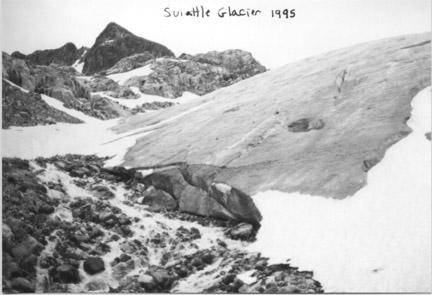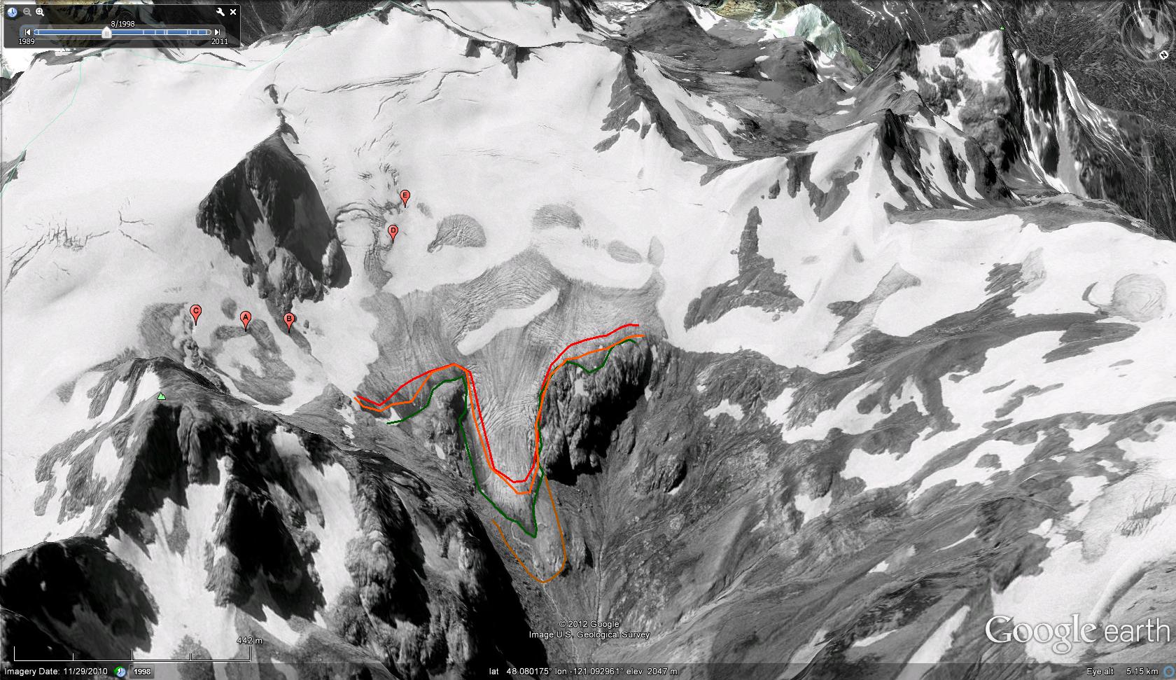 The last three years have led to considerable mass loss of glaciers in the area. This means less snowcover at the surface, which leaves less room for the ice worms to live and forces them into the meltwater regions. This also leads to more supraglacial stream channels, which develop and deepen. In many cases the streams deepen to the point that they become englacial. The increased ice area also should stress glacier ice worms as they live on algae, which resides largely in snow, which is less extensive and persistent in recent summers.