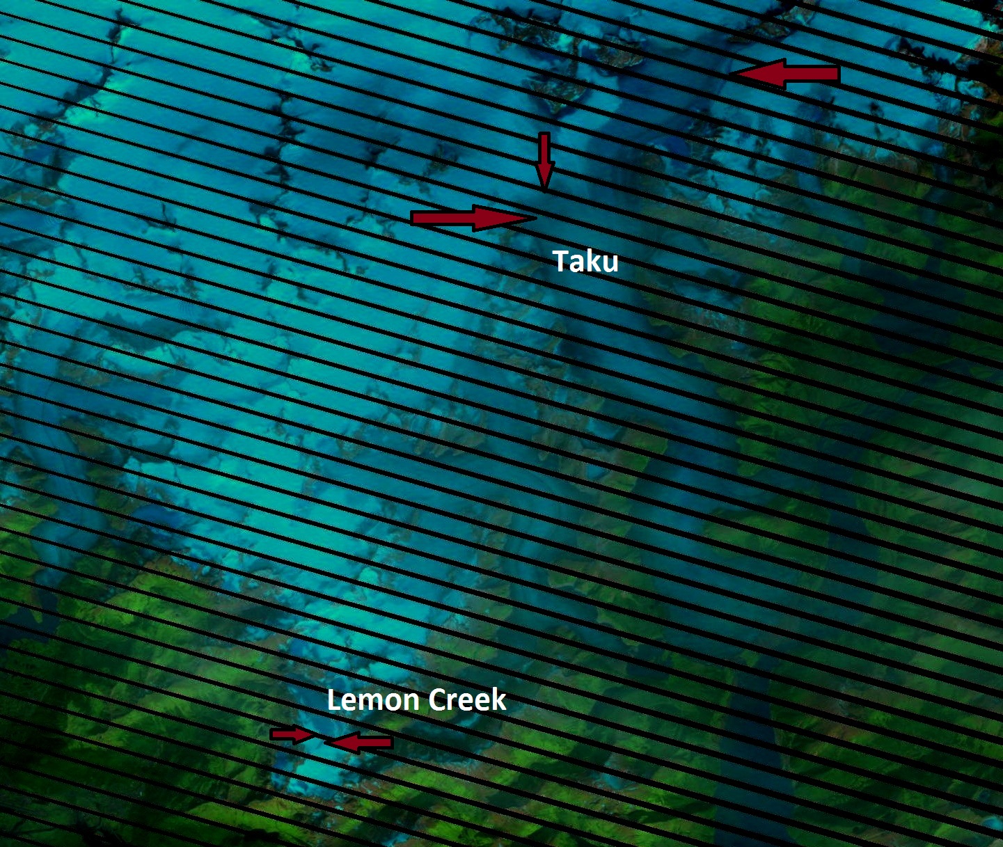 The Lower Curtis Glacier terminus was exposed early in the summer resulting in a continued retreat of 20 m since 2011, the area of thick seraced terminus lost since 1990 has been 60,000 square meters. The lateral retreat and terminus retreat since 1990 are both in the 125-150 meter range depending on location.