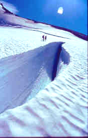 View across lower half of glacier in 1997 towards Ermine Glacier indicating limited crevassing and flow of this thin section of the glacier