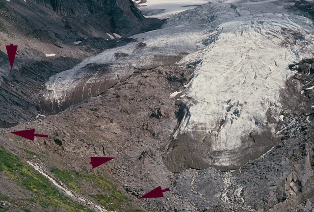 Vista Glacier in 1988 aerial image illustrating the glacier is still adjacent to advance moraine.