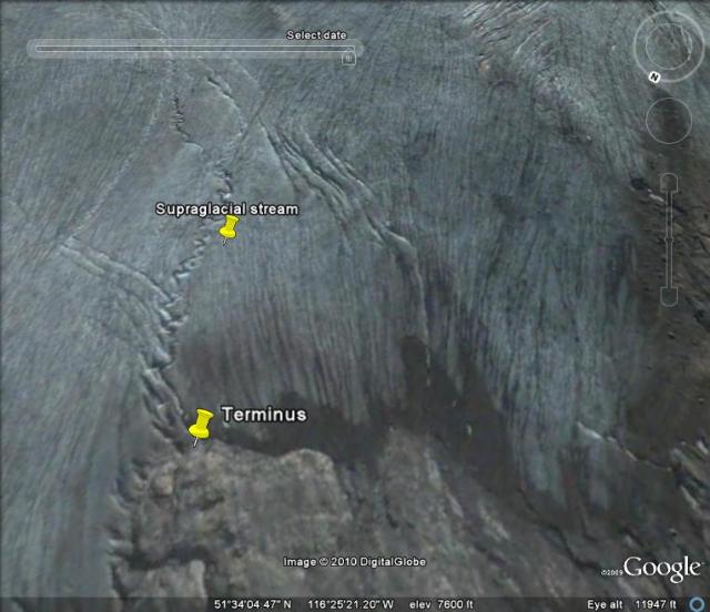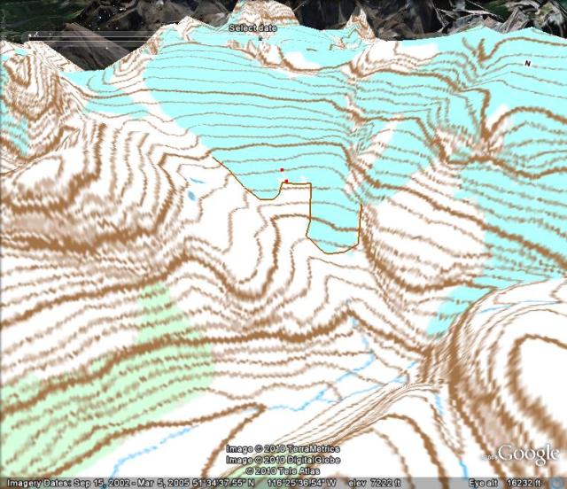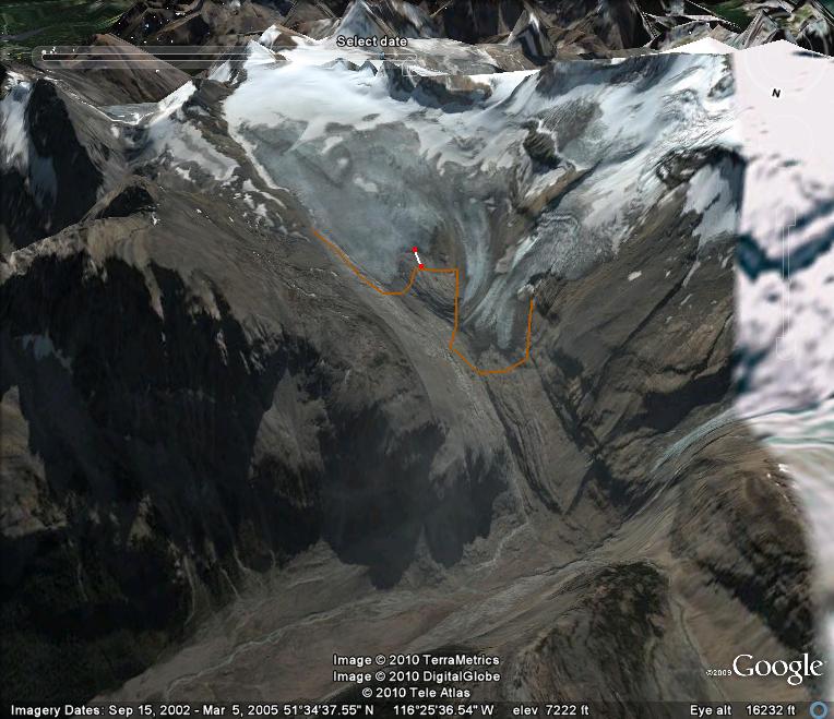 Google Earth Image of Cummins Glacier location to Kinbasket Lake.