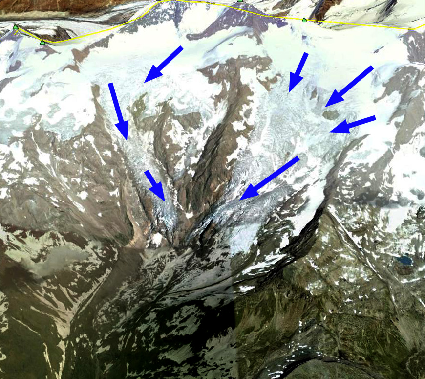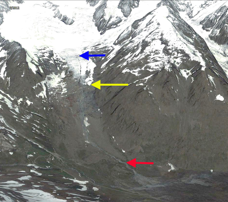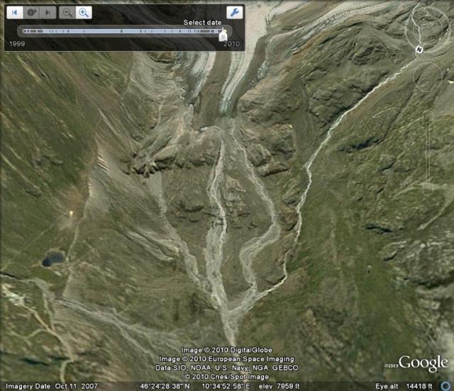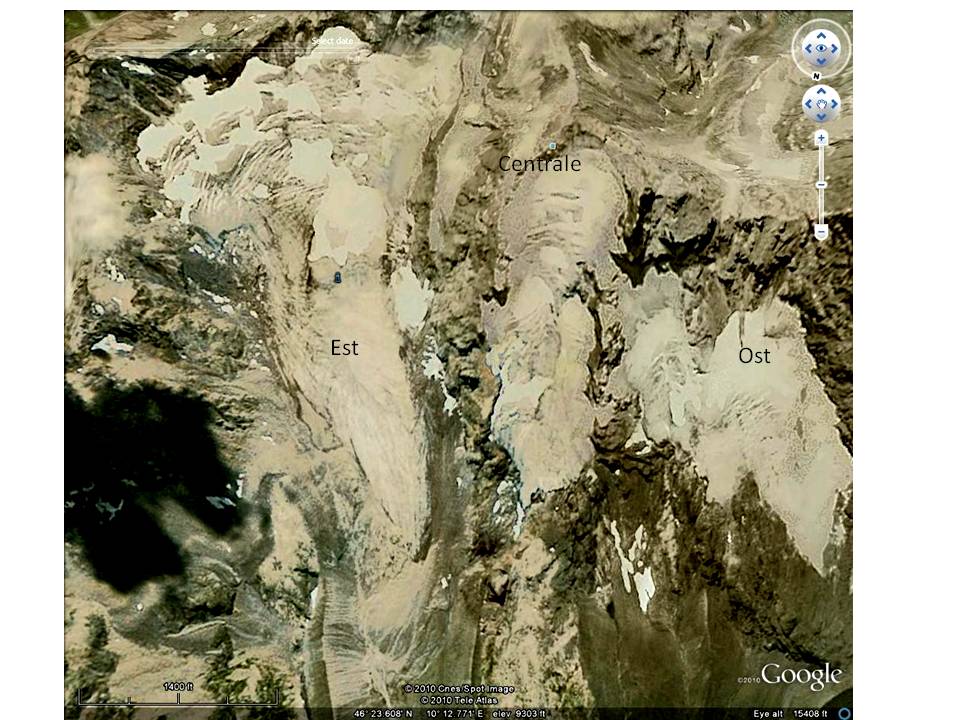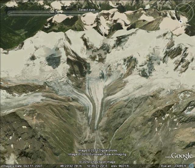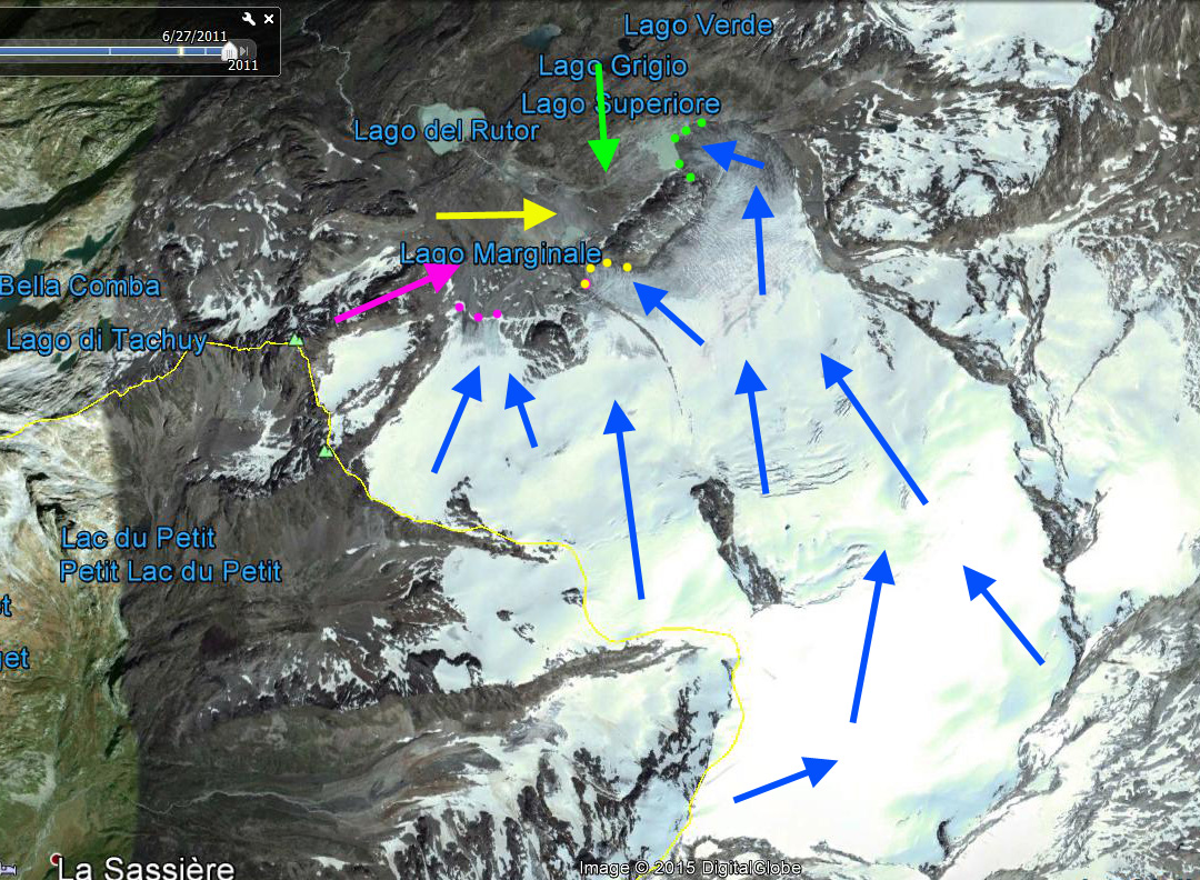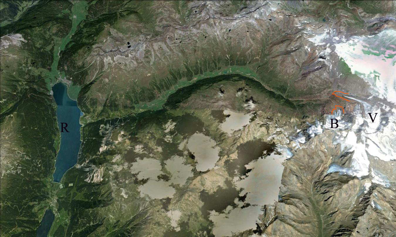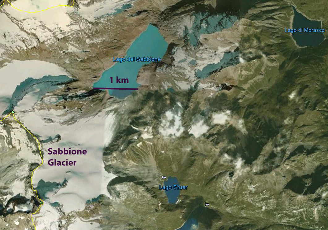 Google Earth image of Sabbione Glacier and Lago Sabbione.