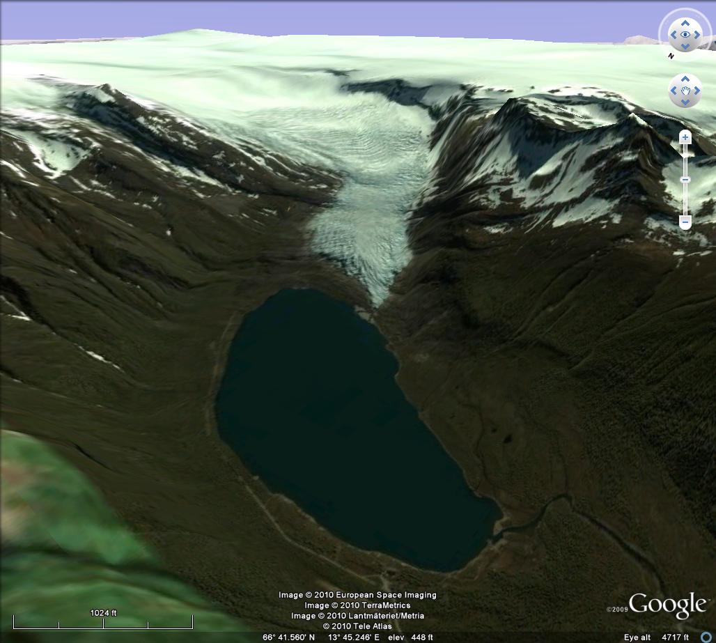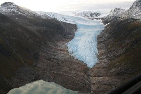 Flatisen is the primary outlet glacier on the southern side of the second largest ice cap in Norway the Western Svartisen. From 1945-2000 the glacier terminated in a proglacial lake that expanded from 1.5 km long in 1945, to 3 km in 1985 (Theakstone, 1990) to km in 2000. Haug et al (2009) indicate significant mass loss of the Western Svartisen Ice Cap from 1985-2000.