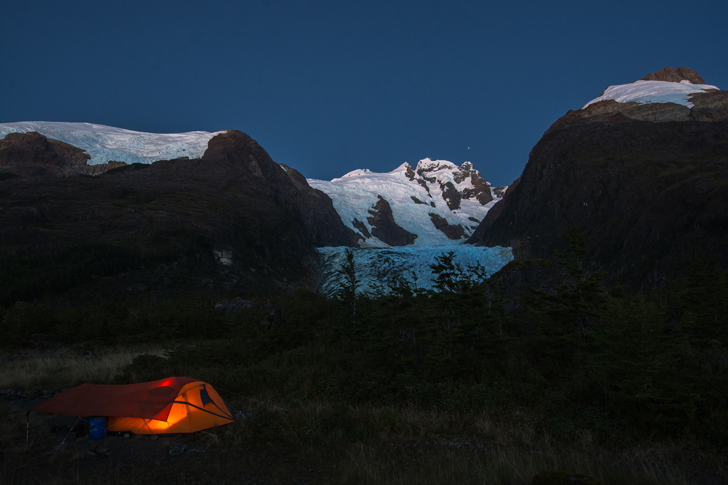 Exploradores Glacier is an northern outlet glacier of the Northern Patagonia Icefield. In 2016 Exploradores Glacier had a 12 km2 terminus lobe with a couple of small proglacial lakes with a total area of ~1 km2. The terminus lobe of the Exploradores Glacier is now collapsing, this is a process that has already occurred at Steffen Glacier, San Quintin Glacier and Colonia Glacier. The terminus lobe is relatively stagnant as indicated by the minimal surface slope. The result will be a new substantial proglacial lake. In 2023 and 2024 an active zone of calving has developed on the east side of the terminus, yellow dots, with an area of 2.1 km2. This appears ready to continue expanding west across the glacier tongue expanding this embayment.