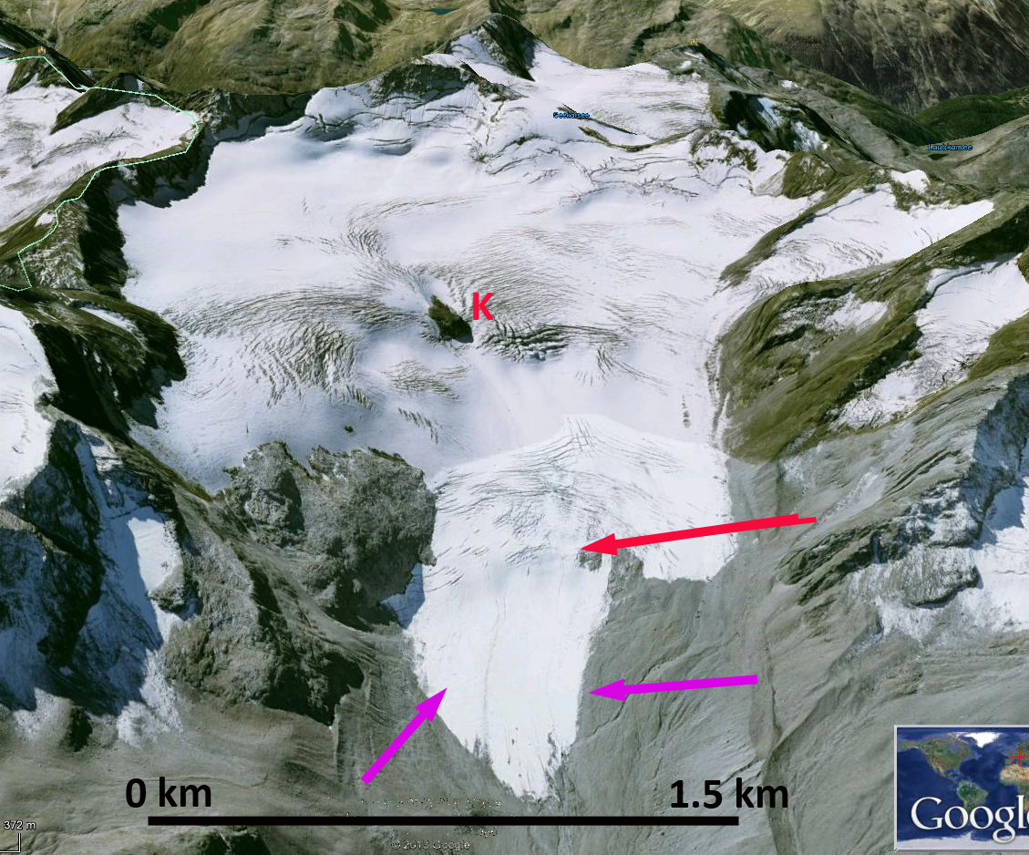Sulztalferner Digital Globe image from 2015. Note adjacent ski area and deglaciated icefall reach.