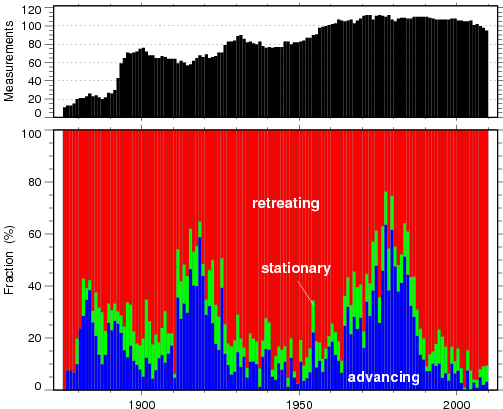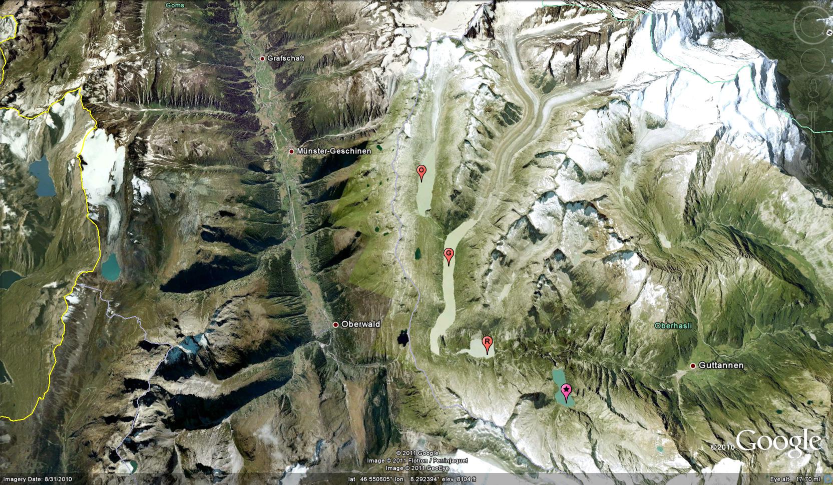Basodino Glacier in late August of 2016 had 5-60% of the glacier still in the accumulation zone. two weeks later on Sept. 9, 2016 the glacier had 35% of the glacier in the accumulation zone. This is the accumulation area ratio, which needs to be above 55% for equilibrium. For Basodino Galcier 2016 will be another year of mass balance loss and retreat. The detailed monitoring will provide specific values for each reporting to the Swiss Glacier Monitoring Network system and the WGMS.