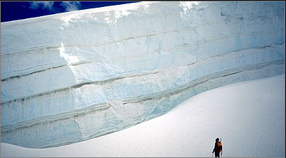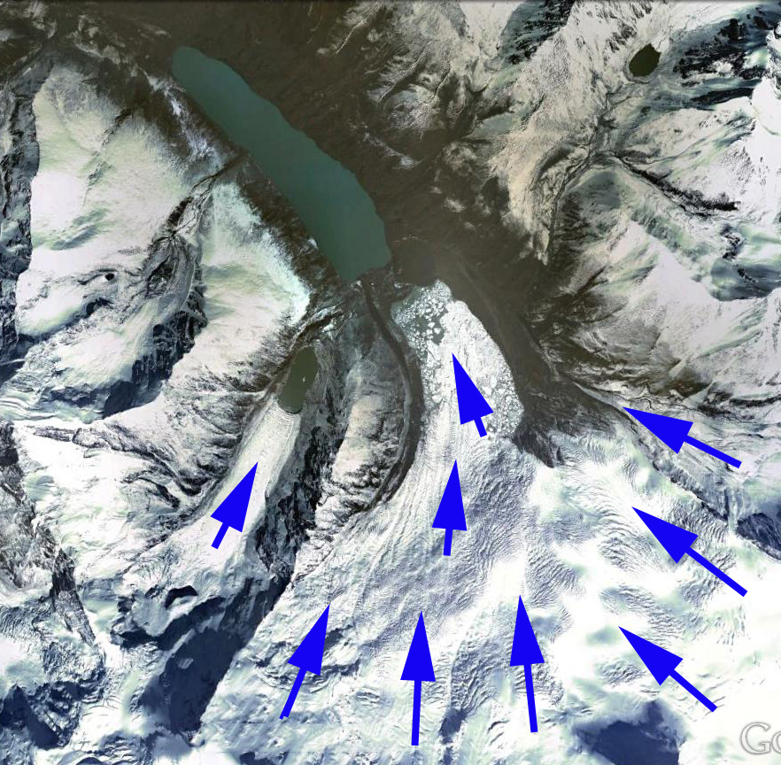Chako Glacier, with Chako Peak indicated by green triangle.